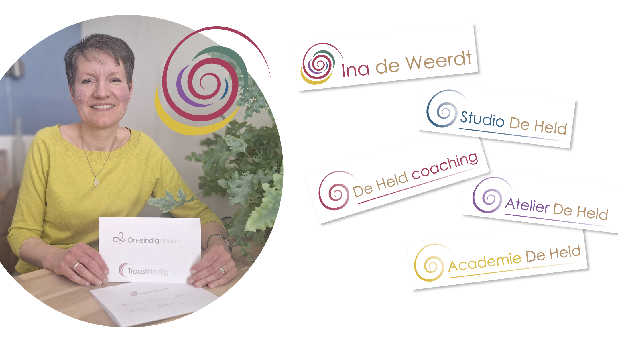 Ina de Weerdt sloeg een aantal jaren geleden een nieuwe weg in, zodat ze anno nu in feite een startende ondernemer is: “Zo zie ik mezelf inderdaad. Ik ben vooral bezig met het coachen en begeleiden van mensen op het gebied van levensvragen. Zingeving, noem ik dat zelf altijd. Vanaf het eerste begin had ik echter het idee dat het begeleiden van mensen niet de volledige lading dekt.” Er kwamen nieuwe pijlers in de lucht en de startende ondernemer ging op zoek naar een partij die een logo voor haar kon ontwerpen. Via haar netwerk kwam ze bij Afeer Druk & Print terecht. Het eerste contact was telefonisch, daarop volgde een gesprek in Winschoten. “Mijn concrete vraag aan Sylvia was: ik wil heel graag een logo waarin ik mezelf herken, dus dat mij past als een persoonlijke jas, maar dat vooral ook een gezicht naar buiten toe is, herkenbaar voor de klant, zonder dat daar veel woorden voor nodig zijn.”